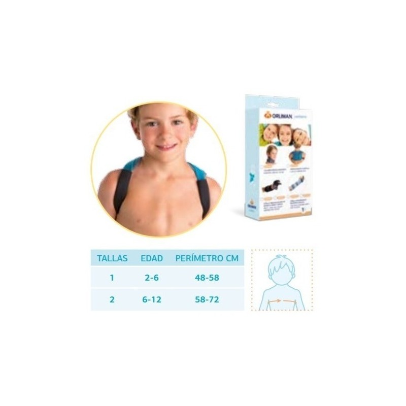 Fabricado en panal, rizo y foam acolchado con fundas de neopreno en los tirantes, pasadores en la parte posterior y cierres de microgancho para ajustar la tensión de la ortesis. Los velcros se pueden desmontar en caso necesario para acortar la longitud del tirante, ajustándolo así a las peculiaridades físicas de cada paciente. La almohadilla dorsal está confeccionada con material acolchado para incrementar el confort del paciente. Los tirantes son de velour rígido para conseguir una correcta inmovilización de los hombros en retropulsión.
