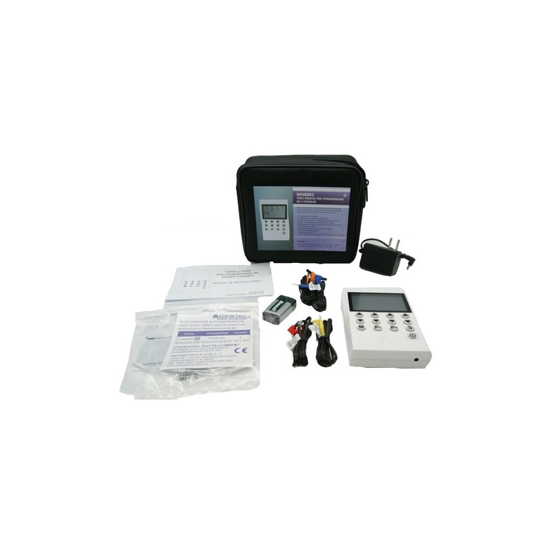 Incluye: Unidad TENS, 4 electrodos, 2 cables conductores, baterías y estuche de traslado.