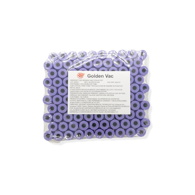 Tubo morado 4ml, esteril para toma y recoleccion de sangre , fabricado en plastico pet al vacio